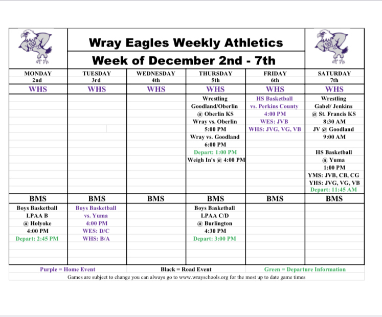Updated Wray Eagle Weekly Activities